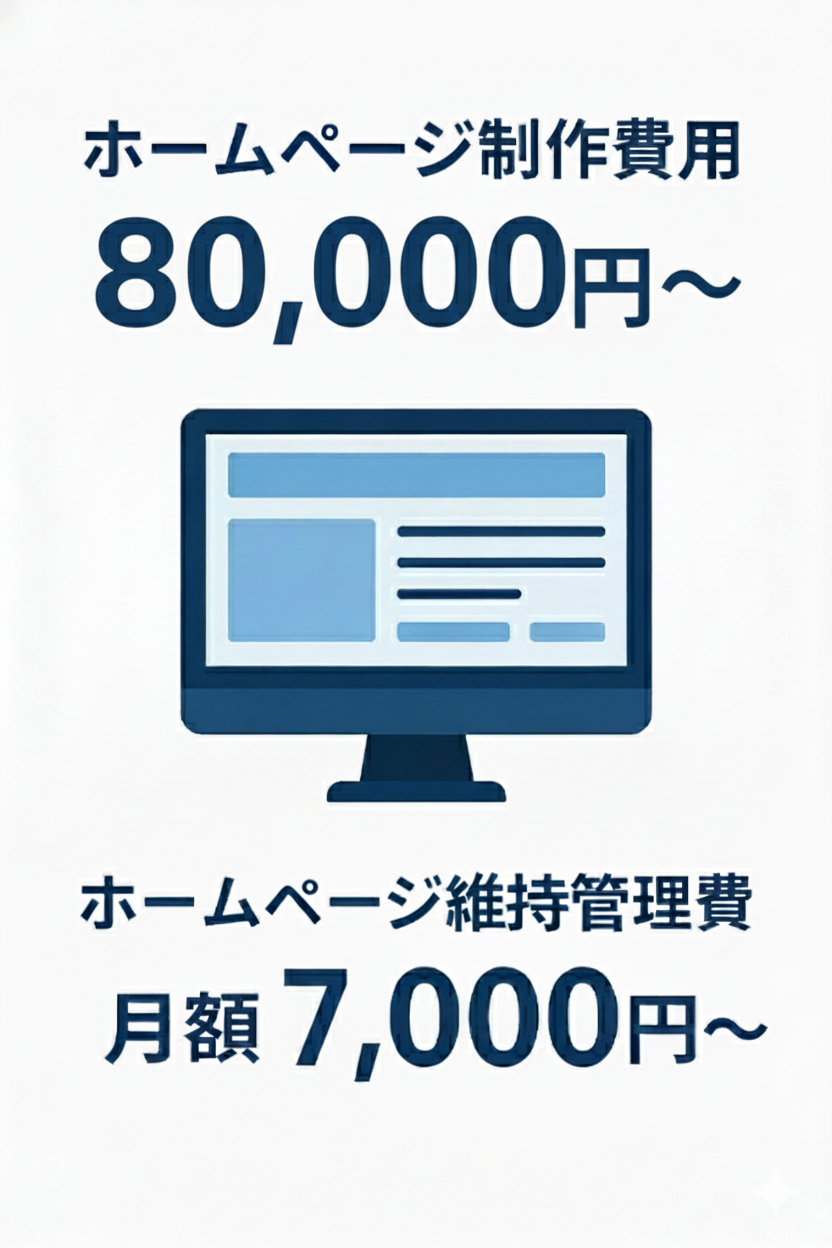 - ホームページ維持管理費 7,000円~(消費税別)(月に2回までの、 軽微な修正(テキスト修正、画像の差し替えなど)