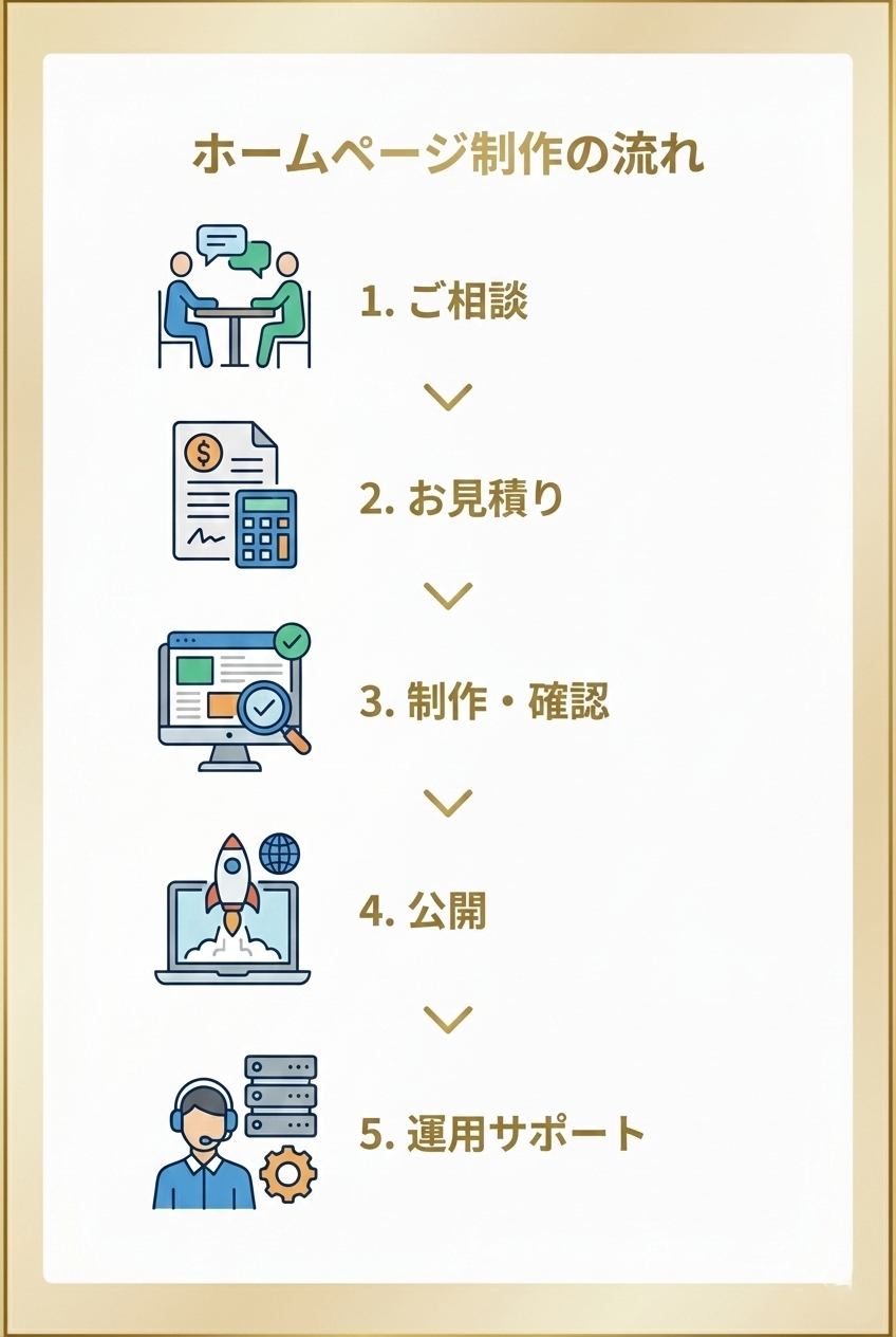 - ホームページ制作費用 80,000円~(消費税別)基本的に5ページまでの料金です。